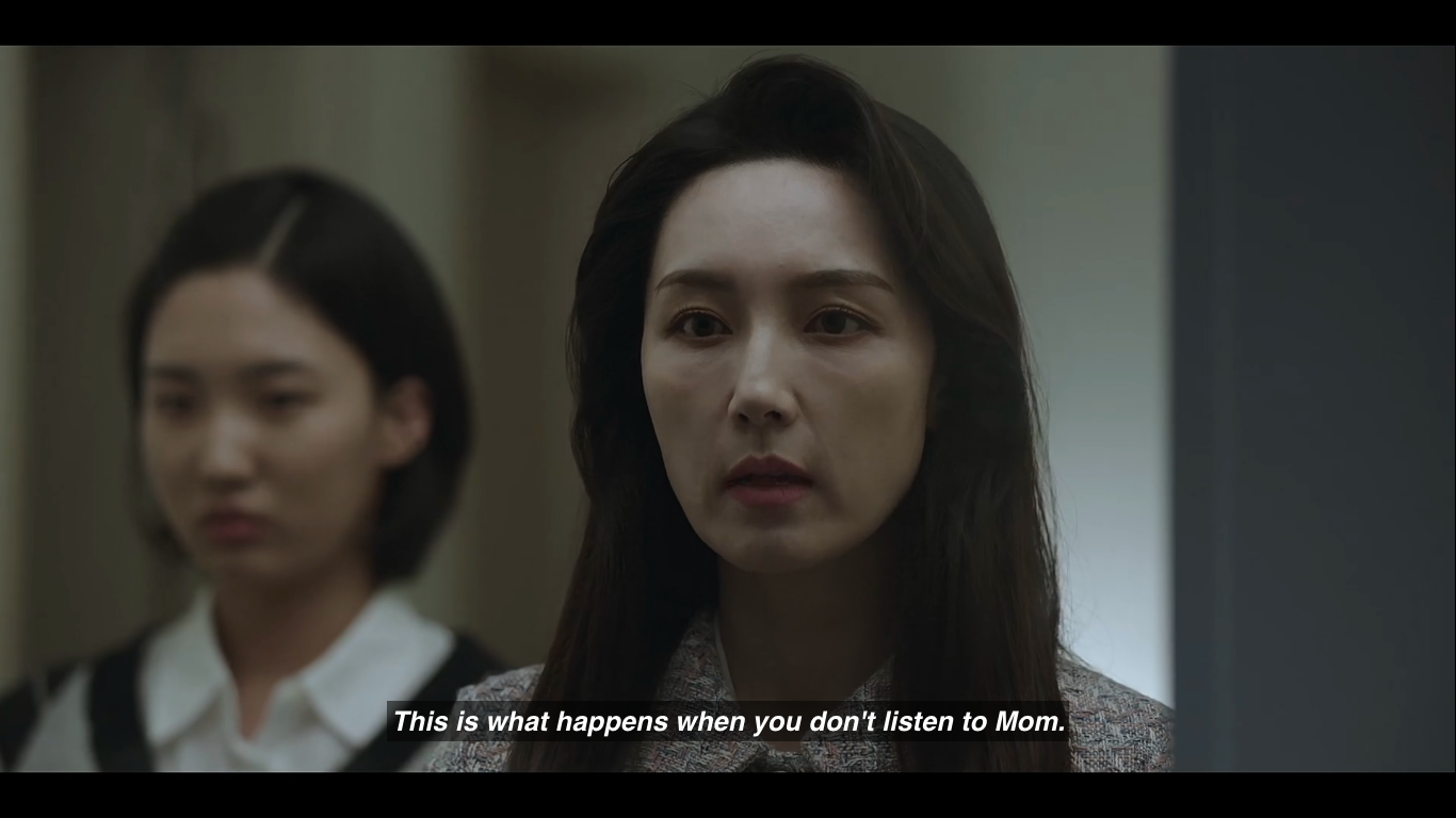 Although it is puzzling and, to some degree, frustrating, watching Yeong Ran bending in her mother’s presence, it speaks volumes about her true nature and character. Despite her having entered a game that requires being a highly shrewd person in order to play, she is far from that. On the contrary, Yeong Ran is very straightforward, vulnerable, and sensible. Nonetheless, that doesn’t make her naive or a fool, and when the time comes, she is more than willing to get rid of her mother, at least for a while, until she deals with more pressing issues.