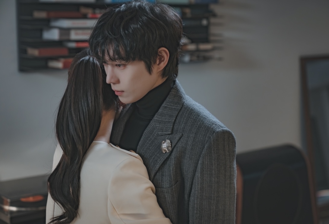 Having clawed her way from rock bottom to the very top and returned as a top star, Baek Ah Jin is seen leaning into Yoon Joon Seo’s arms. Her impossible-to-read, hollow facial expression and Yoon Joon Seo’s complex gaze as he remains perfectly motionless heighten anticipation for the doom-laden romance and suspense the two are about to unfold.