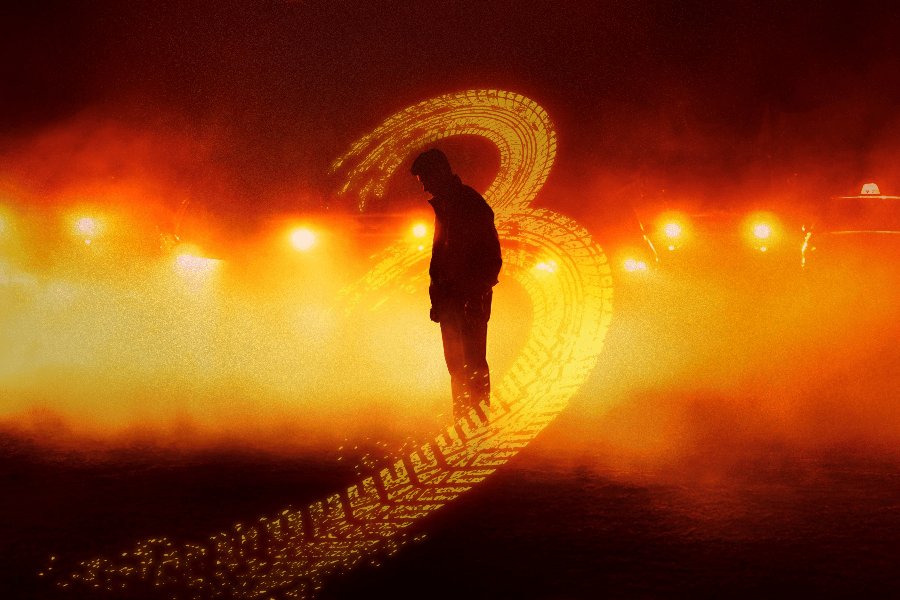 Surrounded by the headlights of countless cars, the taxi hides in the shadows like a predator quietly watching its prey. The number “3,” wrapped around Kim Do Gi in the shape of a tire skid mark, builds anticipation for the car-chase action that has become the series’ trademark.