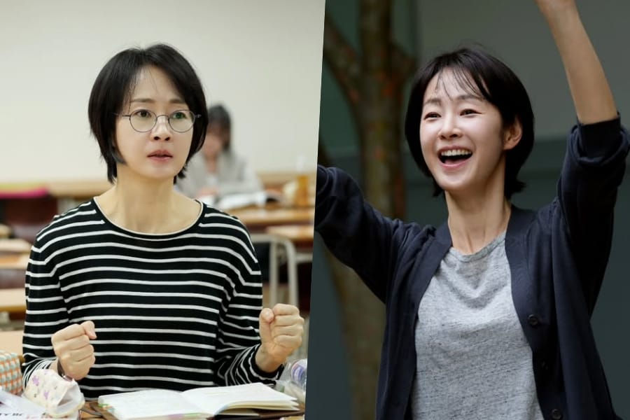 The new stills show Park Ha Jin taking charge of her family’s future on her own. In one image, she clasps her hands with a desperate expression, surrounded by various blocks of text that fill the frame like a magazine cover. The main headline refelcts Park Ha Jin’s current situation, reading, “Wife’s Hot Topic: Husband About to Become Unemployed—Will Things Be Okay?”
